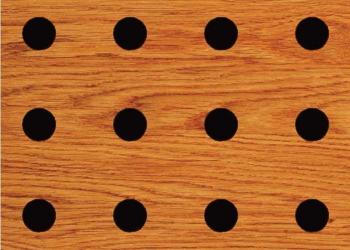 Die Perforation beim Lochform-Typ ist größer, sodass sich die Akustikplatten auf tiefe Frequenzen oder sogar tiefe und mittlere Frequenzen spezialisieren, in denen sich Sprache bewegt.