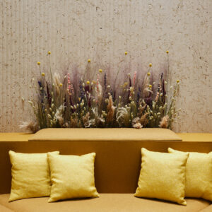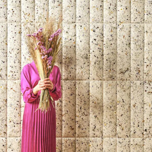 Akustikplatte aus Naturfasern und Blütenblättern mit einem edlen, natürlichen Aussehen.