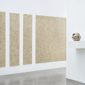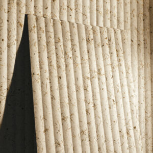 Akustikplatte aus einer Mischung aus Gras, Flachs und recycelten Fasern mit authentischer organischer Oberfläche.