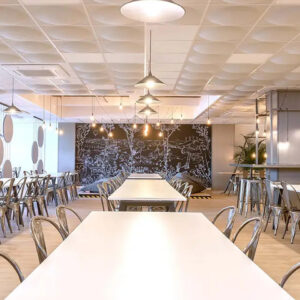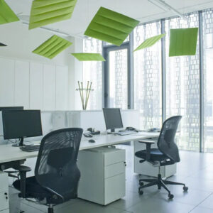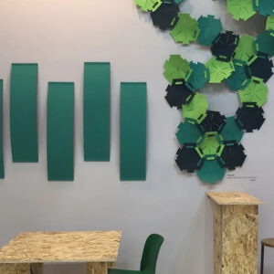 Die Akustikpaneele Slalom aus der Serie ECO bieten einzigartige Formen und Oberflächen, die visuelle Leichtigkeit mit hoher Funktionalität verbinden.