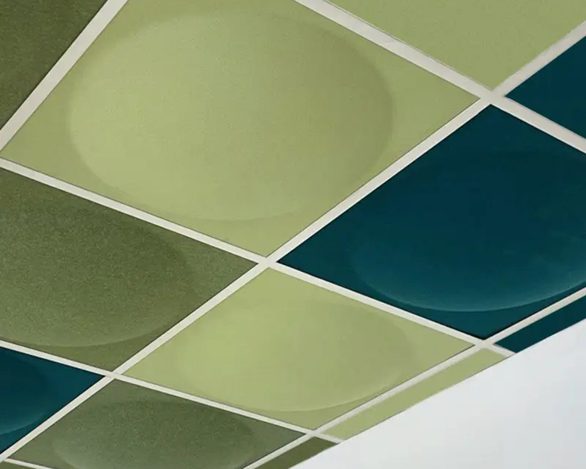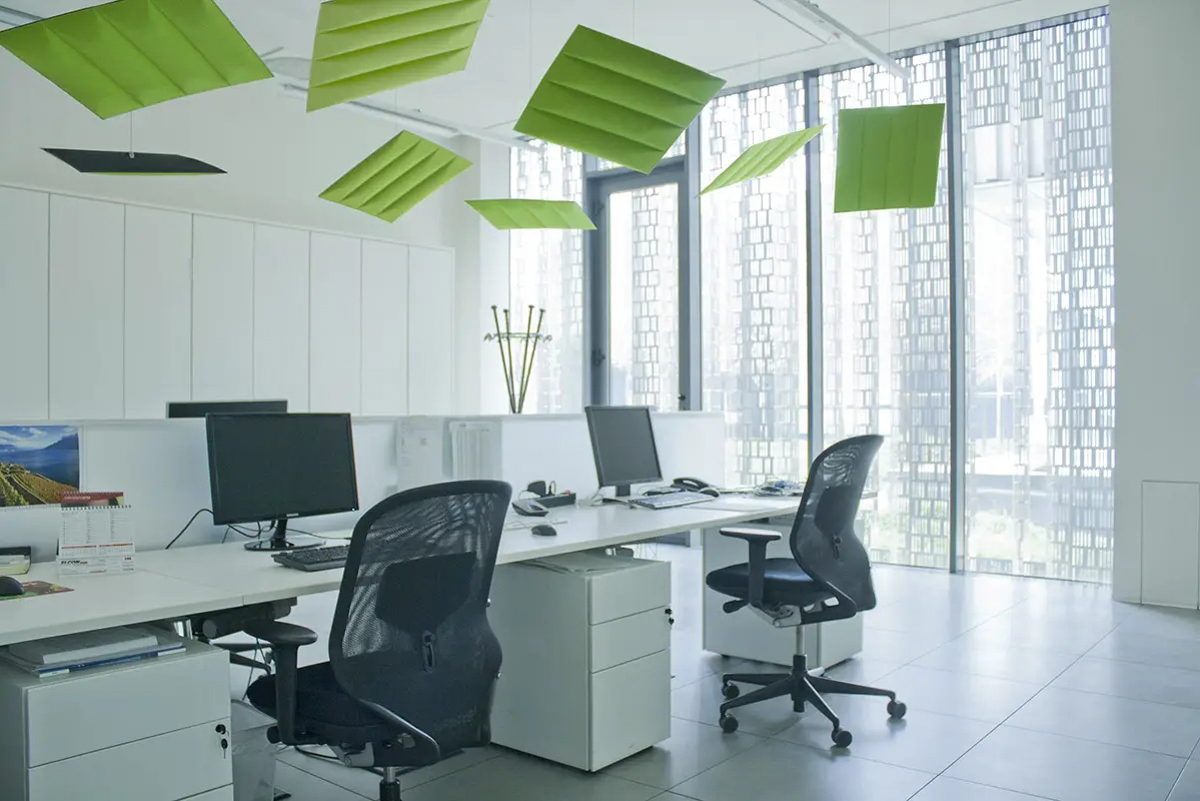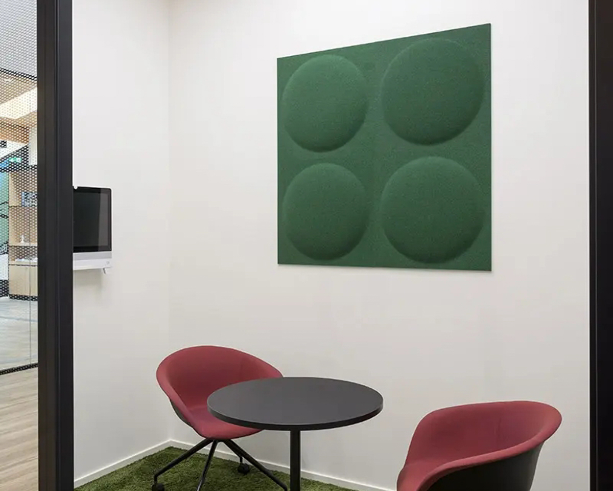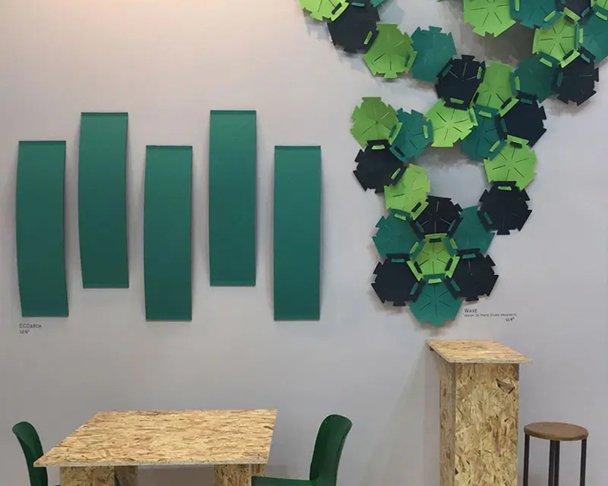 Die Akustikpaneele Slalom aus der Serie ECO bieten einzigartige Formen und Oberflächen, die visuelle Leichtigkeit mit hoher Funktionalität verbinden.