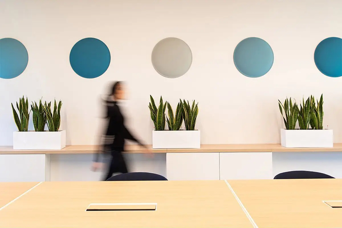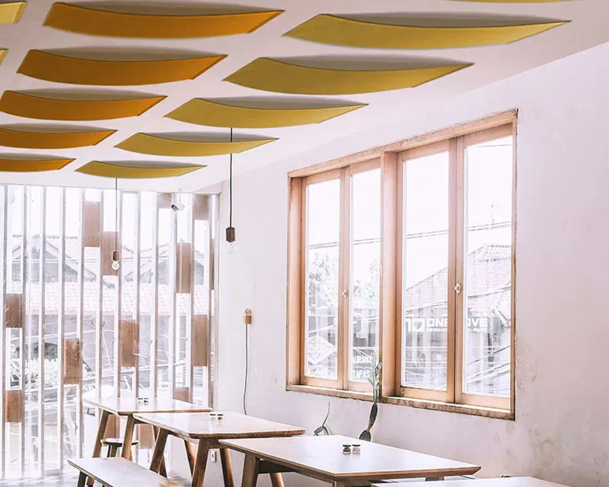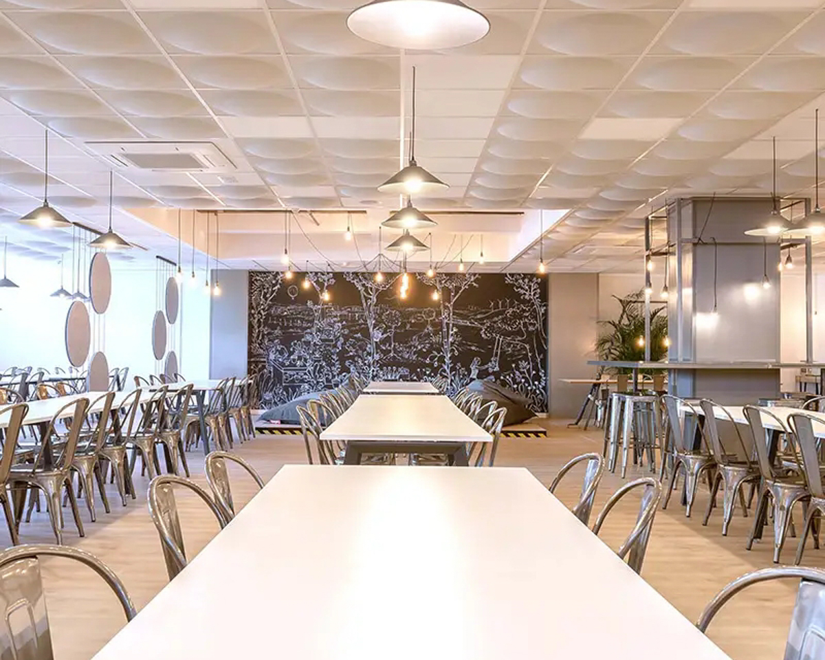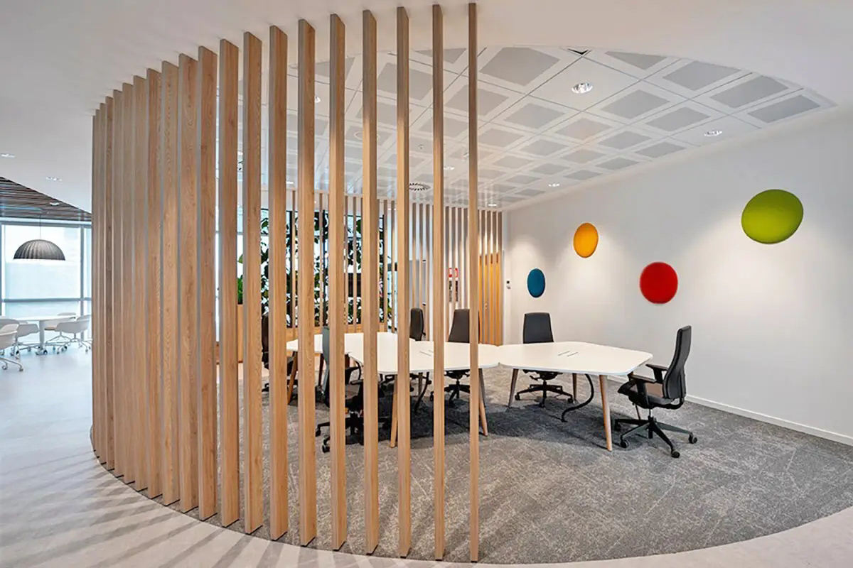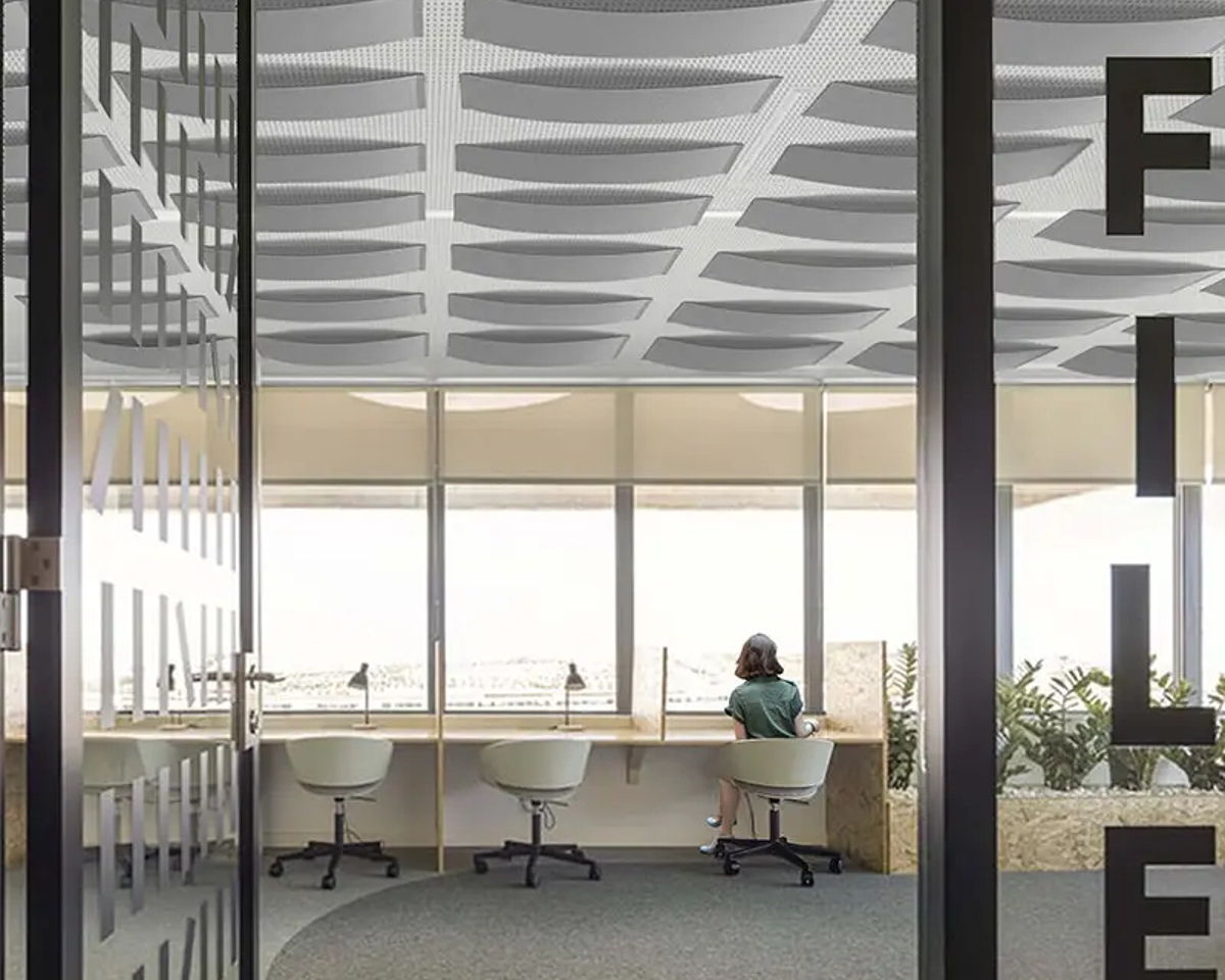 Die Akustikpaneele Slalom aus der Serie ECO bieten einzigartige Formen und Oberflächen, die visuelle Leichtigkeit mit hoher Funktionalität verbinden.
