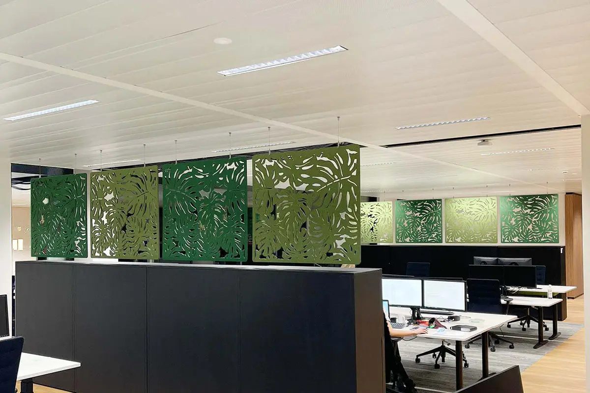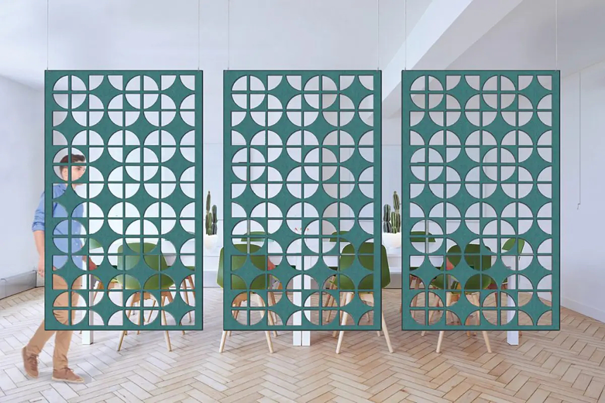 Die Trennwände sind so konzipiert, dass sie die Akustik verbessern, den Schall dämpfen und gleichzeitig als modernes dekoratives Element dienen.