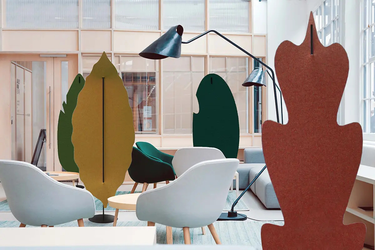 Slalom Partitions verbinden natürliche Inspiration, Design und akustische Funktionalität.