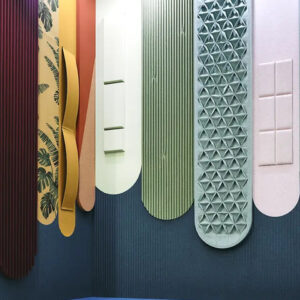 Geformte Akustikverkleidungen mit modernem Design und vielfältigen Farbvarianten.