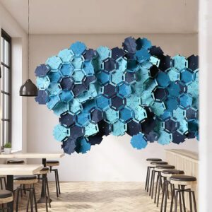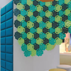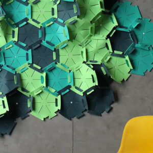 Dekorative Akustikplatten in verschiedenen Formen aus PET-Filz.