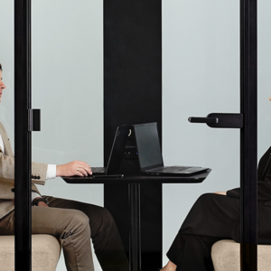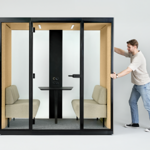 Die Akustikkabine SONUS M, geeignet für 2 Personen, bietet eine ruhige Umgebung für private Besprechungen. SONUS M ist die ideale Lösung, wenn die Schaffung eines neuen geschlossenen Raums zu kompliziert oder zu kostspielig wäre.