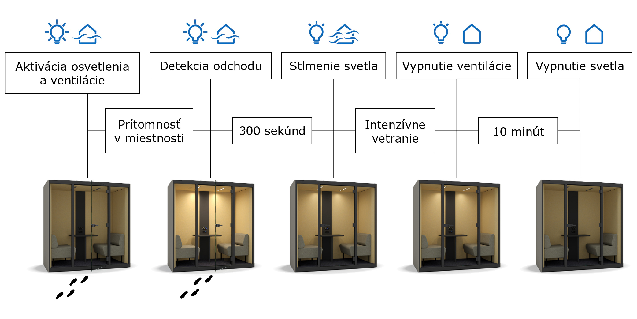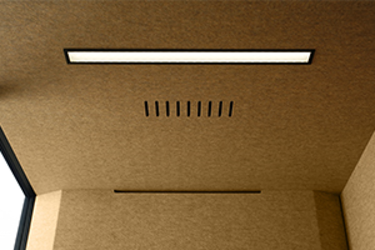 Das integrierte automatische Belüftungs- und Beleuchtungssystem funktioniert reibungslos und sorgt für ein optimales Klima und beste Arbeitsbedingungen. So können sich die Nutzer auf das Wesentliche konzentrieren – qualitativ hochwertige Gespräche oder einzelne Aufgaben. Die Intensität der Belüftung und Beleuchtung kann nach Bedarf eingestellt werden.