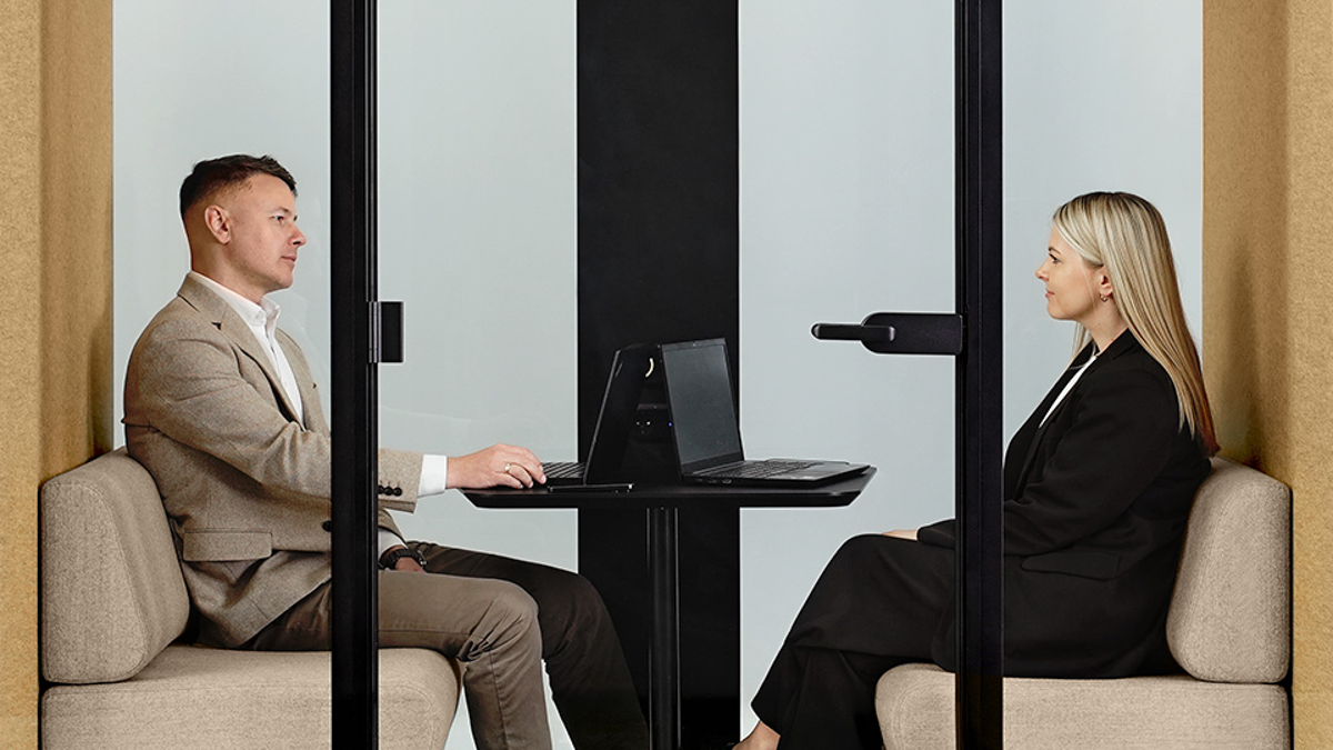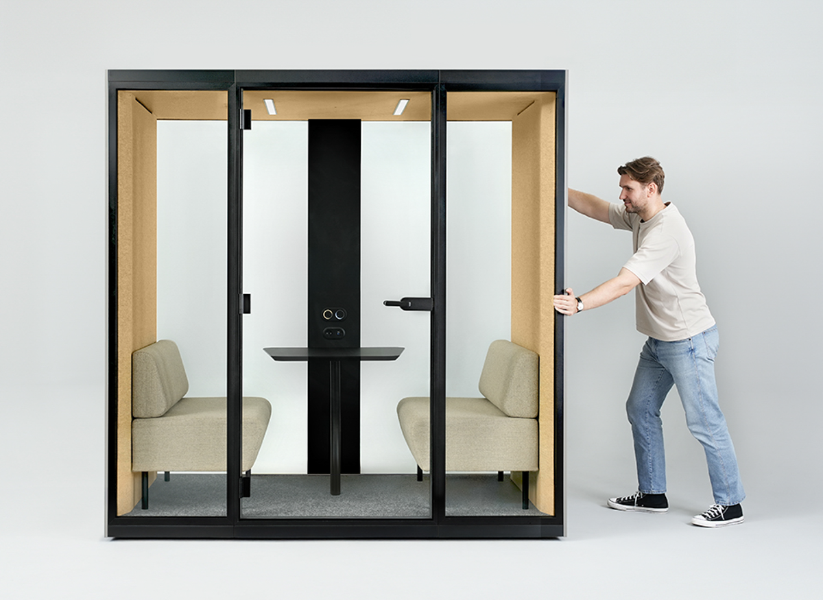 Die Akustikkabine SONUS M, geeignet für 2 Personen, bietet eine ruhige Umgebung für private Besprechungen. SONUS M ist die ideale Lösung, wenn die Schaffung eines neuen geschlossenen Raums zu kompliziert oder zu kostspielig wäre.